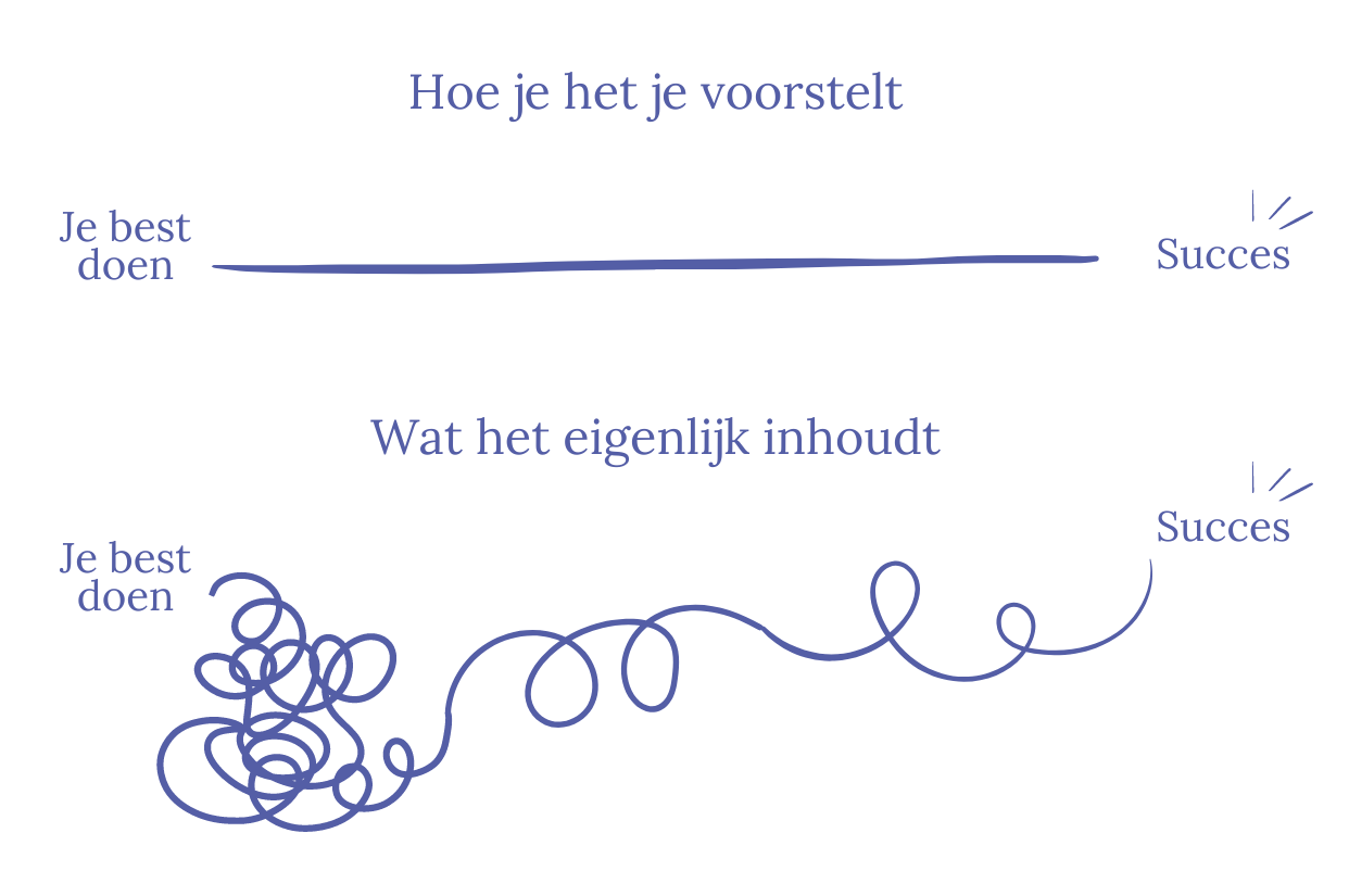 Heb je dan nooit met doelen gewerkt? “Jawel, maar het werkte niet voor me. Dan ga ik controleren en forceren. Terwijl als je stappen blijft zetten, doet wat goed voelt en groots durft te denken, komt het in mijn ogen vanzelf. En als je blijft maar pushen op dat doel, is er geen ruimte voor nieuwe kansen of inzichten.”